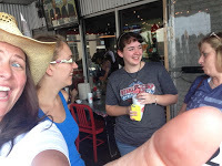 We did have to drive there! But, as an alternative, if you're not a huge fan of hot chicken (experience it IN Nashville just once, I beg of you), and you don't have a car or a ride, the hotel shuttle will take you downtown to the strip. From the stop there, you can walk around a corner and have darn near any kind of food you want (and go Honkey-Tonking if you choose to do so). Well, the Fractured Glass ladies and I had a dinner date, so we hopped into a shuttle and moseyed on over. Of course, several people joined the party! It was amazing! Here's a couple of pictures from Jimmy Buffet's.