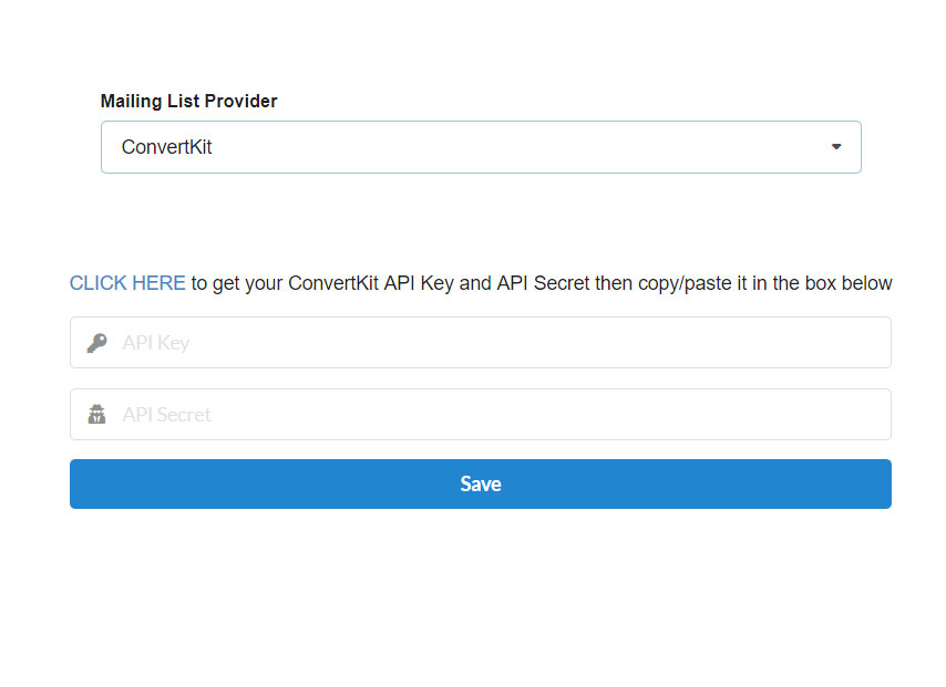 CONVERTKIT But we're moving on to ConvertKit! Integrate Email Provider. Choose ConvertKit from the dropdown.