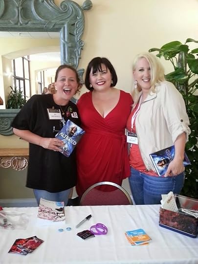 There were a lot of people there with something unique going on. Misty Provencher had the prettiest face paint I've ever seen, making her look rather like a fantastical fairy. Bella Roccaforte had fire-engine red hair. N. L. Greene had a pretty pink streak in her blonde locks, and Sarah Ashley Jones had her signature purple, blue, and white bob. Yeah, you knew who they were at a glance.