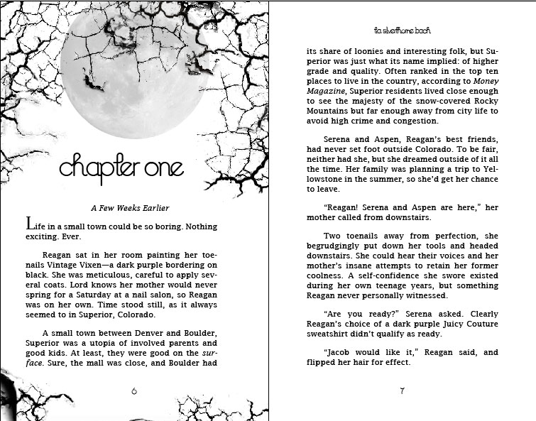 My favorite place to use the cover fonts is in the chapter titles and numbers. And, man, are there a ton of ways you can format that first page! It's the page where the text generally begins about halfway down and you have all that white space to play with. You can add flourishes, decorative type, images, logos, anything! Drop caps are fun, too! But any good designer is going to take the time to make sure it's consistent.