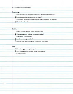Tomorrow's checklists will go into elements of the plot and structure.