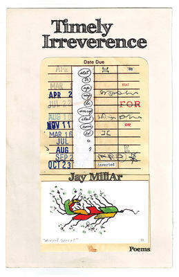 The poems in Timely Irreverence often read like satires of poems or otherwise subvert their conventions upon closer inspection. “This stanza sucks,” writes MillAr elsewhere (that’s the whole stanza), while in another poem “two figures / sit at the edge / of the sea / contemplating / the sea itself— / they meditate: / is it a person- / ification of / the death of / the post-modern / experiment?” Timely Irreverence has a lot of fun asking and re-asking this question.