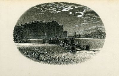 A simple line from the text, “Meanwhile, the winter deepened", was transformed into an illustration (above) of an imposing house in the moonlight, with an ominous, leafless tree fallen in the foreground. Another of my favourites – “She stood scowling into the room with a searching and pallid scrutiny” – depicts Madame de la Rougierre, the nasty French governess, with a skeletal face, brandishing a candle towards us in a doorway. The chiaroscuro is striking. Similar to that of the film adaptation of the novel, already underway while Stewart was making his illustrations. He visited the set at least ten times in 1946 to sketch portraits of the actors. He collected many of the film stills – some of which are in the RA's exhibition. It’s difficult to gauge how much Robert Krasker’s bold cinematography (also seen in The Third Man and Brief Encounter) influenced Stewart’s final work, and vice versa.