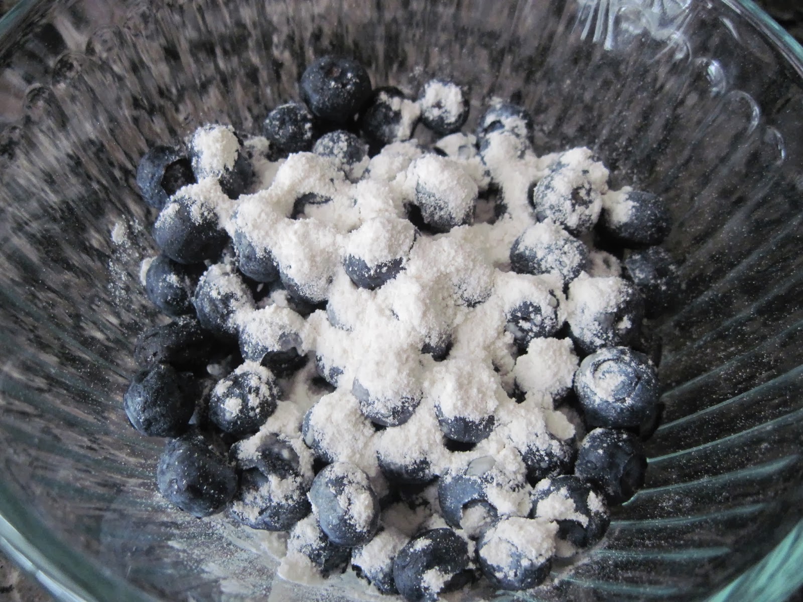 Place the blueberries in a small bowl with the 1 tablespoon of flour. Toss to coat.