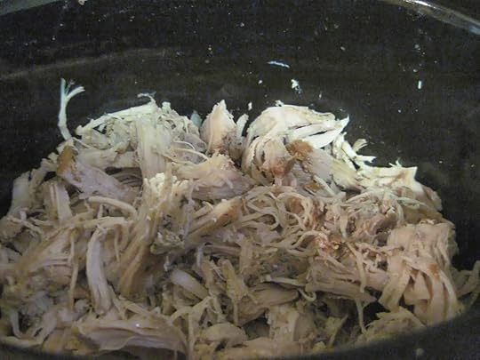 Pour barbecue sauce over shredded pork. (Use enough to coat thoroughly-about 1 1/2 cups.) Simmer in cooker for 1 hour.