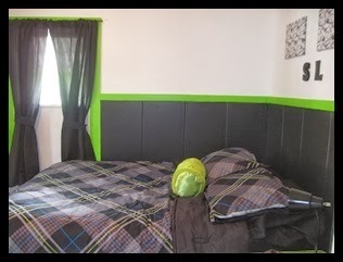 Time to paint! Yippee! Okay -not so exciting, but three coats later-the results must have been exactly what my step son had pictured, because he was smiling from ear to ear.