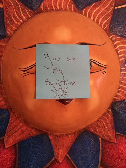 As you know from earlier this week (if you stop by NSS regularly), Olivia is leaving positive post-its in random places as part of her Lenten practice. Yesterday morning we came down to the kitchen to find the one below. We also spied her leaving a “You are wonderful” note inside a worship aid at church. I love these kids.