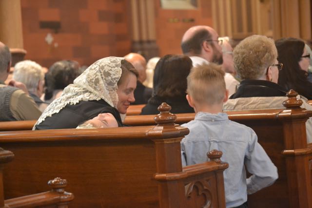 As we waited for Mass to start, we watched families filing in, many of the women and girls wearing head coverings and