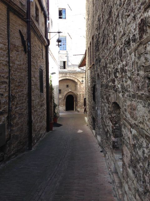On the street where St. Francis was born, there’s a beautiful church built on the spot, and at the end of the street a little door leading to a shrine that is supposed to be on the exact spot where Francis was born. Here’s the alley…