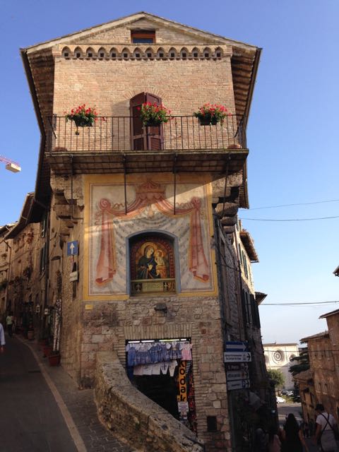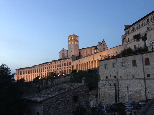 In today’s little photo essay below, I’ll give you shots from inside the city on both days, with one exception. Although it’s outside the city walls, I’ve included our visit to Santa Maria degli Angeli because the Porziuncula should be included with the rest of the holy sites of Assisi and not with the winery tour. So here you’ll see the beautiful city of Assisi: spiritually powerful, physically breathtaking. I can’t wait to go back.