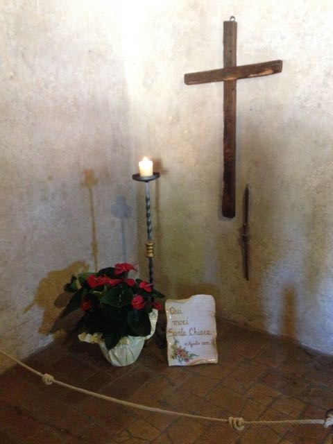 After the hermitage, we headed to the Church of San Damiano, where St. Clare and her Sisters lived. Msgr. Benwell again celebrated Mass for us while we were there. Here’s the spot where St. Clare died: