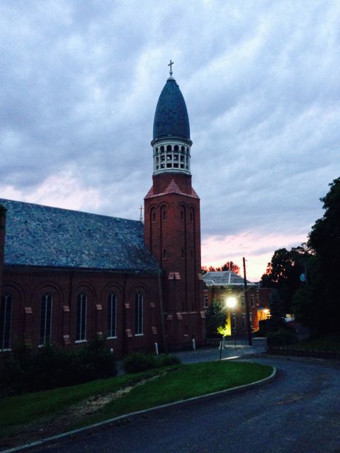 If you don’t have any plans to travel to a pilgrim site in the near future, look for opportunities closer to home. There are so many wonderful Catholic shrines, churches, monasteries, and chapels to explore, some probably right in your own backyard. That church in the photo on the right is just across the Hudson River from us. Dennis and I spotted it one evening after a dinner out. As I stared off at its spire in the distance from our spot along the Corning Preserve, I wondered aloud what church it might be. Dennis suggested we just get in the car and find out. So we did. A pilgrim moment right at home.