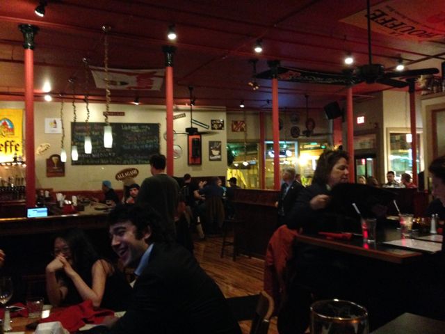 In addition, before Dennis took off for Rome, we continued our recent pub crawl. Last week we hit the Red Caboose in Oneonta. Great Belgian beer and equally great food. Then we spent an afternoon at the City Beer Hall in Albany. I posted a review HERE, in case you missed it. This week we hit The Merry Monk in downtown Albany, another great Belgian beer joint. Even the burgers are made with Belgian ale. Great little place. Go on a Wednesday and you can get BOGO (we’re talking pounds) on the mussels, as Dennis did on our visit. We will continue to visit new pubs and restaurants and post about them here. Stay tuned… Here’s a quick glimpse of an evening at The Merry Monk: