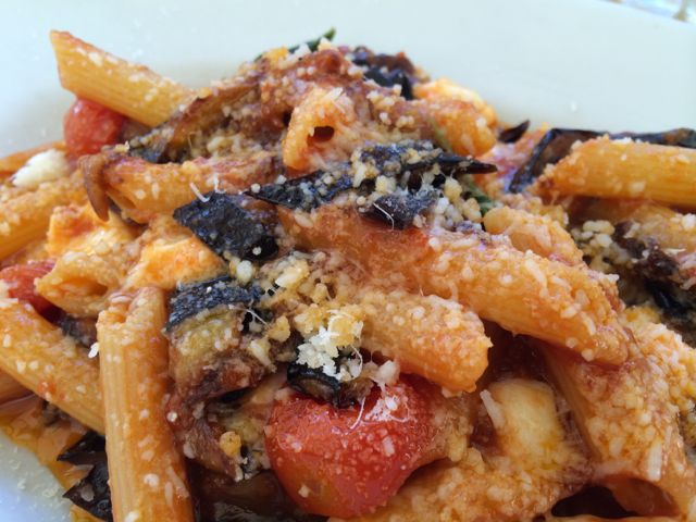 At 3 a.m. New York time, I was having breakfast with Dennis at his hotel’s rooftop restaurant with a view of St. Ignatius Church on a gorgeous sunny day in Rome. By the time I was getting the kids ready for school this morning, I was walking with him through Campo di Fiori, checking out all the Italian goodies in the various stalls and sitting down for a delicious lunch of pasta with eggplant and tomatoes and, of course, a glass of red wine.