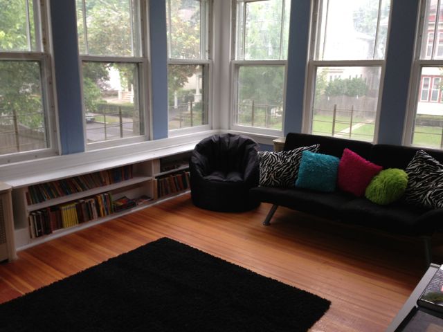 Original ugly green room. Desperately needing a makeover. And bookshelves.