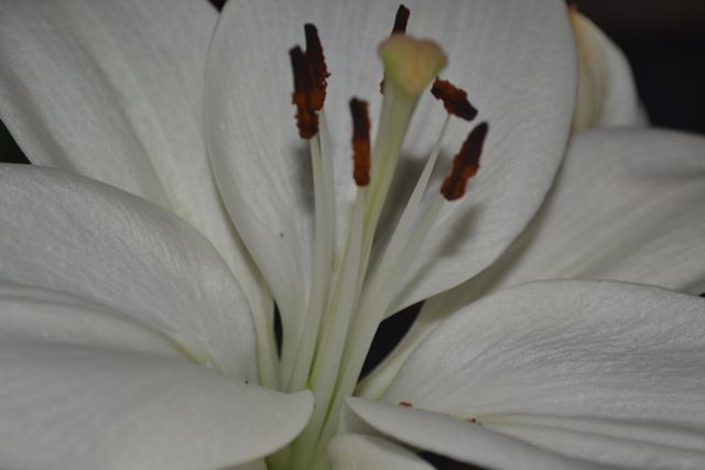 I would love to be able to paint a flower in the manner of Georgia O’Keeffe. Actually I’d be happy to paint anything in any manner at all, but that’s a blog post for another day. So I have to settle for trying to take photos of flowers with my macro setting, although I do not have an official macro lens. Here’s what I got this week: lilies from a bouquet in the kitchen; irises from along our back property line, near the pet graves.