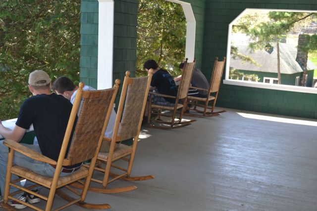 I was thrilled to see kids sprawled on the floor of the cabin, sitting on rockers on the front porch, leaning against a wall, and writing and writing and writing. At each of my four sessions, I actually felt bad telling them their time was up because all