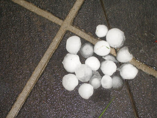We had broken windows, tiles, pipes, shattered solar heating and hubby's car looks like someone's taken a hammer to it all over.
