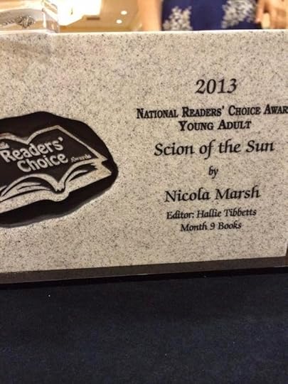News just in from Texas…I've won the NATIONAL READERS' CHOICE AWARD for the 2nd year running, this time for my first young adult novel, SCION OF THE SUN.