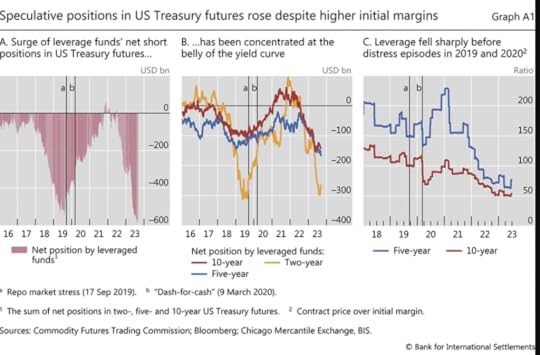 A squeeze–not unheard of in government debt futures markets–can also impose losses on basis trades, leading to liquidations that can exacerbate the price impact. Or a Treasury flash crash (in yields, and hence a flash spike in prices) like on 15 October 2014.