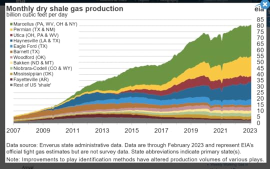I would also note that shale pessimism is focused on oil. Gas has continued to go great guns–despite the fact that the same diminishing returns effect should be operating there as well. US gas production has continued to grow, especially in Marcellus and Permian. The latter is largely associated gas, but the former is not. This is a productivity story, and it’s not like diminishing returns don’t operate in Marcellus.