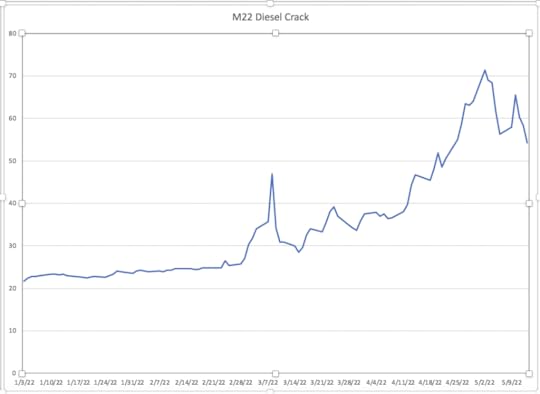 There was a spike in the crack spread right at the time of the invasion in late-February, but that subsided quickly. The subsequent runup, especially the ramp-up in mid-April, is harder to ascribe to the war and almost certainly reflects some demand side factors.