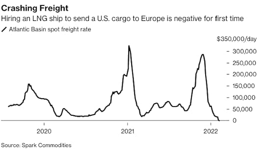 So in the short run liquefaction capacity is quite valuable. The question is what will its value be over the longer term? Will current events convince enough financiers to provide capital for a large expansion of US capacity? Given the long gestation period of these projects it is a hard issue for banks and equity to analyze.
