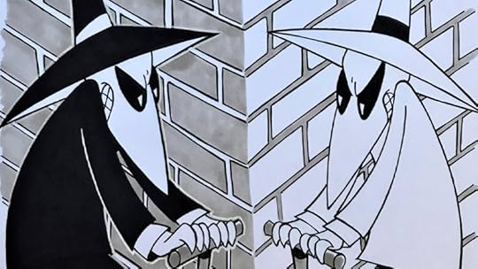 They remind me of the mirror image characters in the old Spy v. Spy cartoon in Mad Magazine: