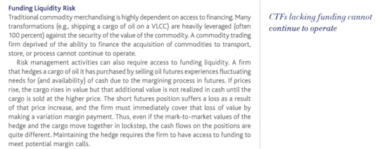 This mismatch between timing of cash flows on a hedge instrument and the underlying physical can create extraordinary cash flow strains that can put a trader into financial distress.