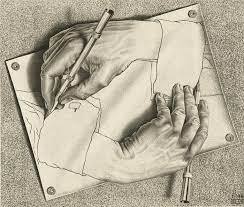 This symbiosis between the private businesses and the governing party is the essence of the political-economic model of fascism. At times, the relationship looks like an Escher etching. Like this one in particular:
