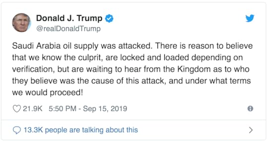 It’s one thing to await information from the KSA, and to coordinate with them. It’s quite another to delegate–as Trump appears to do–the decision on the American response to the militarily inept oil ticks that rule Saudi Arabia who are not our friends.