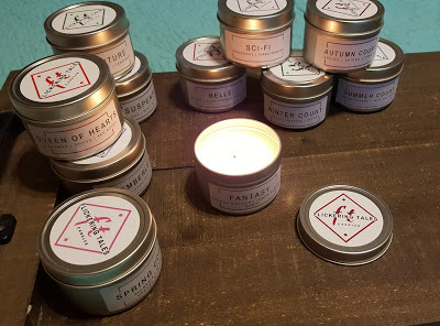 A couple of weeks ago on Instagram, I saw a photo that featured a book (yes, those always catch my attention) and a book-themed candle. I was intrigued and in need of some retail therapy, so I followed a link that led to another link which eventually led me to a little etsy shop called... Flickering Tales