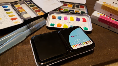 BUT lately I've wanted to play more than I've been able to do with the pencils. Enter these paints...Prima Watercolors. Wow, I love them. They can be bright and punchy, but they can also be light with just a hint of effect. They blend wonderfully...and simply make me happy. I started out with the classics color palette which was more than sufficient, but this week splurged and bought two other of the palettes. Now I'm thoroughly spoiled for color choices.