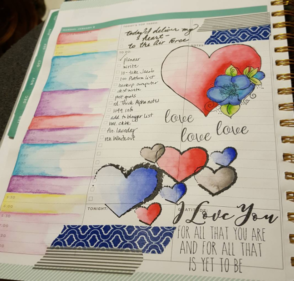 This is the page I did the day Jacob left for Basic Training. I just love all the red and blue hearts and the effect the watercolor shading gave on the page.The stamps are all from Unity Stamp co.You can see my other pages on my IG page.