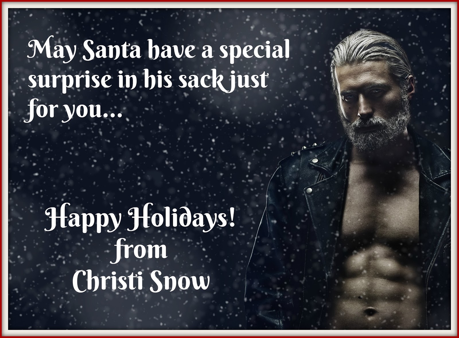 Happy holidays, everyone! I hope you are staying warm by the fire and someone as scrumptious of Santa up there keeping you warm as you read some great romance.