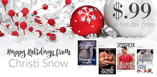 Do you like holiday stories?They're my favorite. As a result, I have several of them in my backlist and for this week only, all of them are going on sale for only $.99!