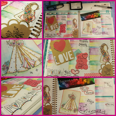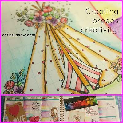 Supplies:*planner from Target (this one features a week on a double page layout...starting in July, I'll be using one that has a single day/per page...also from Target)*Unity Stamps...Start Something New, Artful Expressions, Brave Girl Teepee, Quinn Girl, KOM...Best Year Yet*Derwent watercolor pencils*washi tape *random project life cards*my Facebook banner graphic*Cuttlebug*Spellbinders Samantha Walker die cut