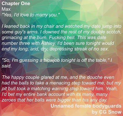 We've already discussed the fact that my muse has ADD. Literally, I come up with ideas and first scenes for books...ALL THE TIME. A few months ago, I had an idea for a female bodyguards series. I wrote the first scene (which I still adore), but haven't played with it anymore.