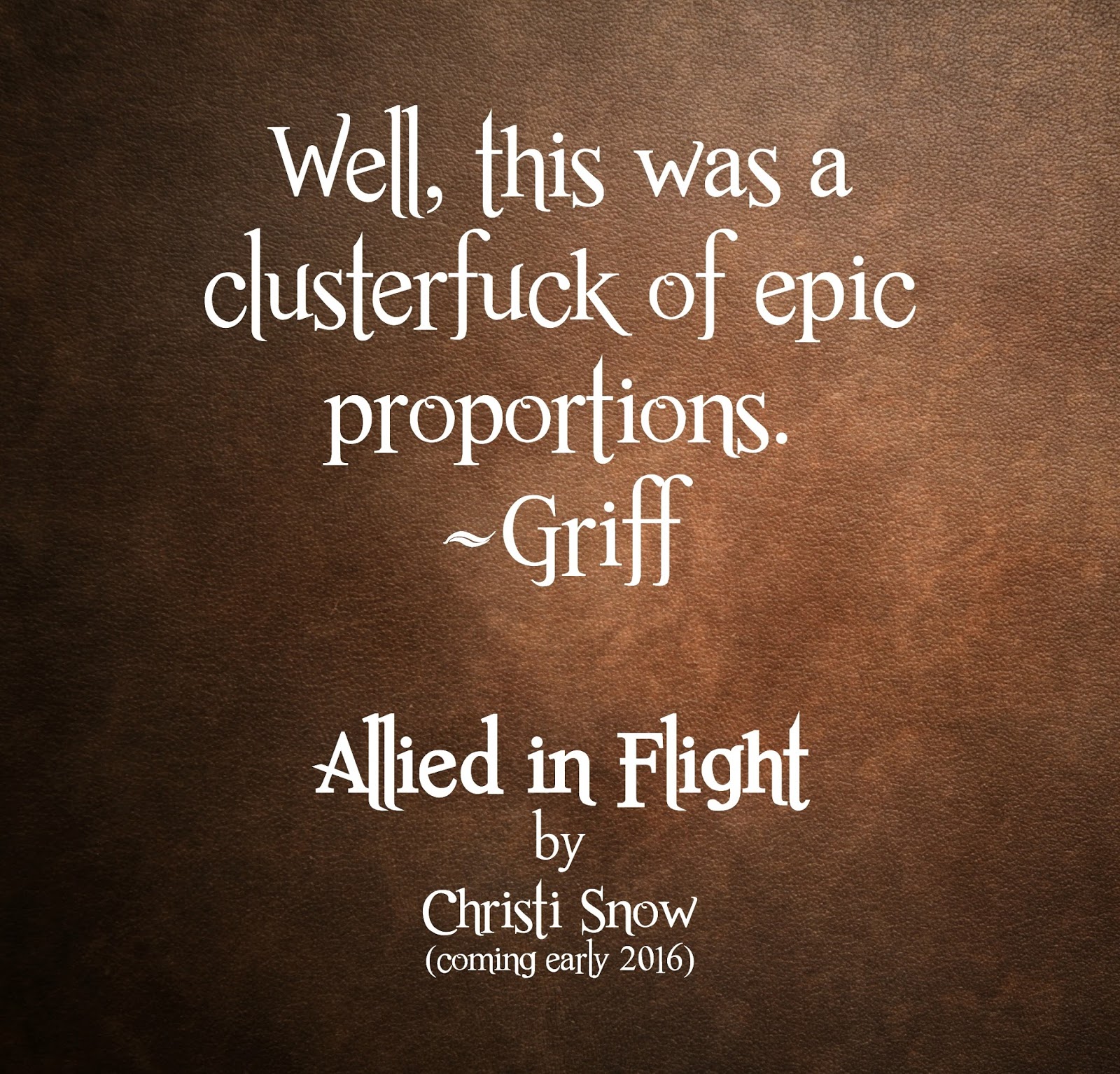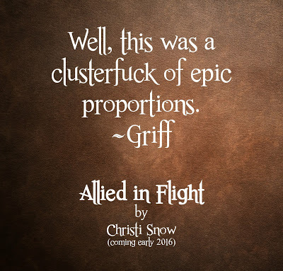 For NaNoWriMo, this month is all about the Through the Veil series. I'm planning to write books #2 AND #3 this month. So for those of you that have been waiting for Griff's fate...he's coming and here's a tiny peek from his book, Allied in Flight.