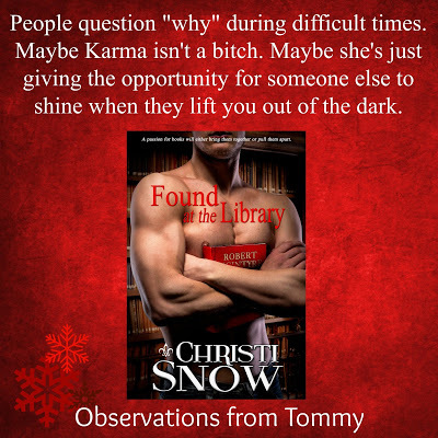 Today, I'm sharing the first few lines of my upcoming release, Found At the Library. In this book, each chapter starts out with an observation from one of the guys...either Tommy, the artist, or Mac, the author. This is one of my favorites...