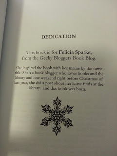 If you've read Found At the Library, you may have noticed the dedication in the front of the book. This book was inspired by a phrase that Felicia from The Geeky Bloggers Book Blog used on her blog. She's a true book lover and a huge proponent for library use.