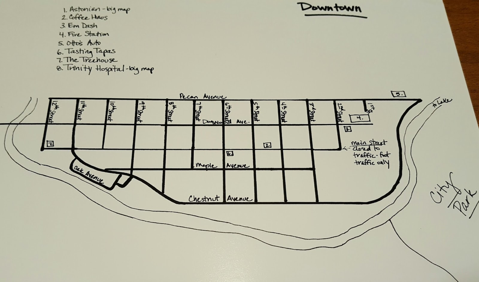 Many of those students like to visit Em-Dash, the local bookstore. The store's book club is particularly notable because it coincidentally occurs at the same time that the fire station across the street has scheduled to wash their fire trucks every week.