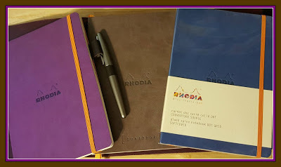 I introduce you to Rhodia journal books. OMG, I love these books and they come in amazingly gorgeous colors which is just like the frosting on top of the cupcake (which interestingly enough is another one of my favorite things). But anyway, I digress...