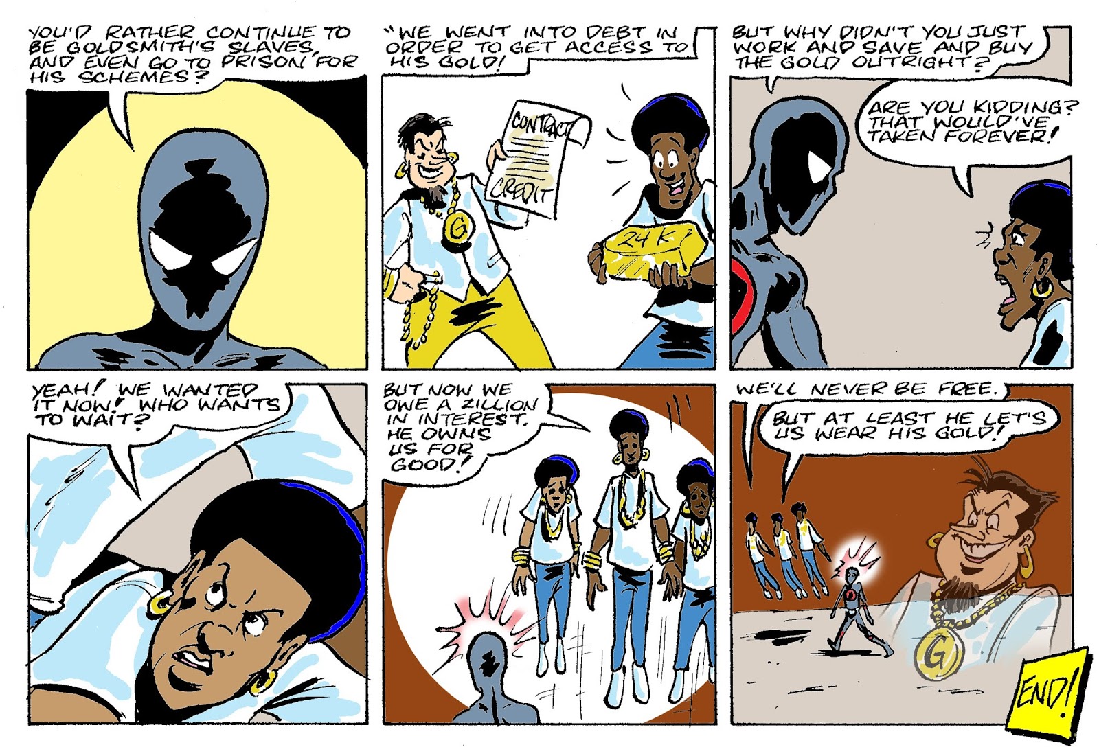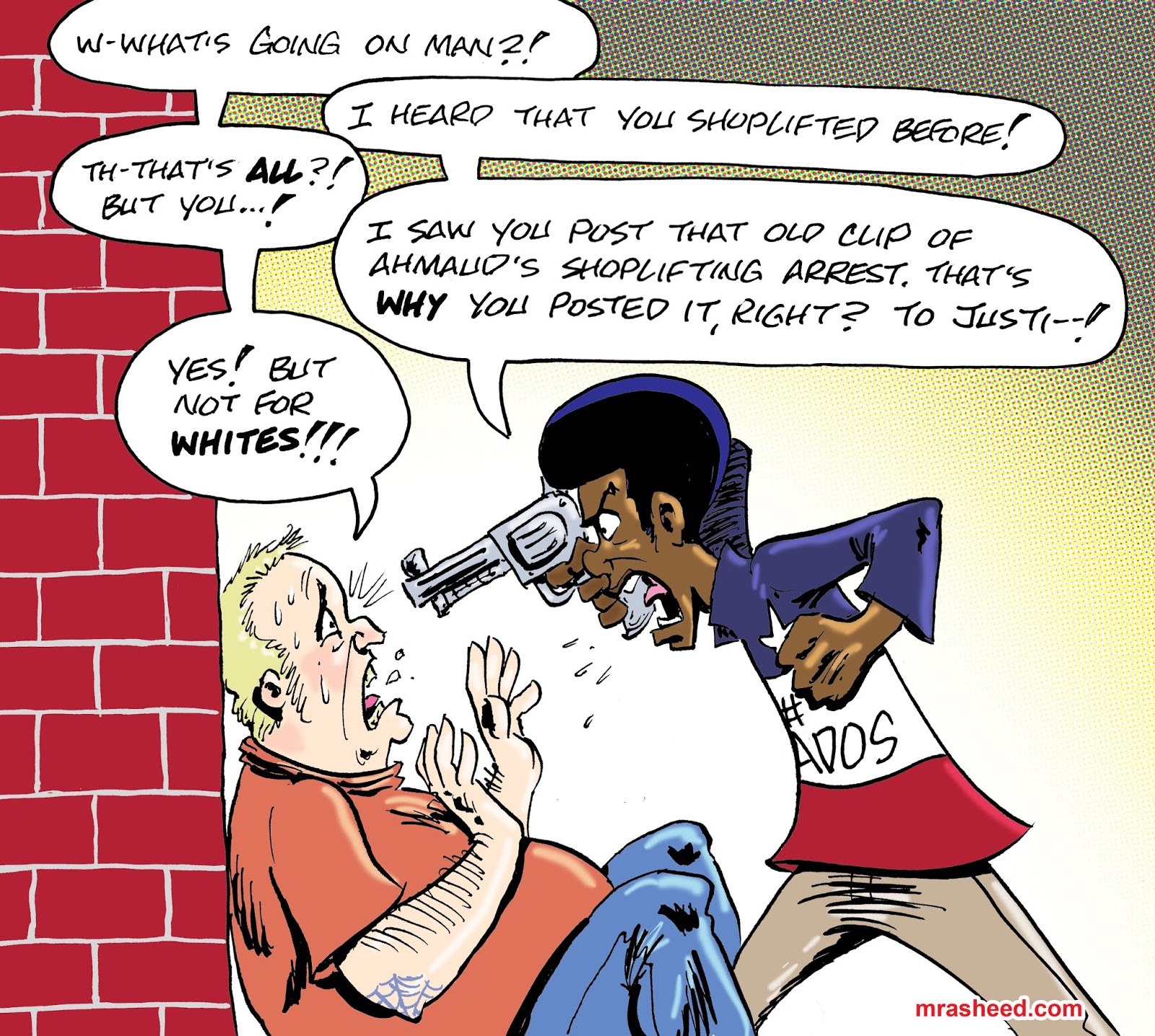 Rasheed, Muhammad. "New Black Code: Death for Shoplifting." Cartoon. The Official Website of Cartoonist M. Rasheed 20 May 2020. Pen & ink w/Adobe Photoshop color.