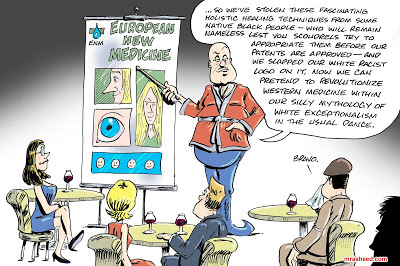 Rasheed, Muhammad. "Sustaining the Age of 'Discovery.'" Cartoon. The Official Website of Cartoonist M. Rasheed 19 May 2020. Pen & ink w/Adobe Photoshop color.