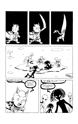 This Monsters 101 short story takes place on the devil world of Dharokalee and features Kyslo, prince of the Tcharen Koh tribe. Those familiar with the “young” prince (he’s young for a Dharokalian but not to us earthlings, as Kyslo is about 600 of our years old ) from his appearances in the main book might be in awe at his laid-back and even affable attitude here, giving some gage as to just how much Mort and Pugroff rubbed him the wrong way.