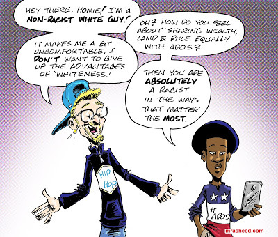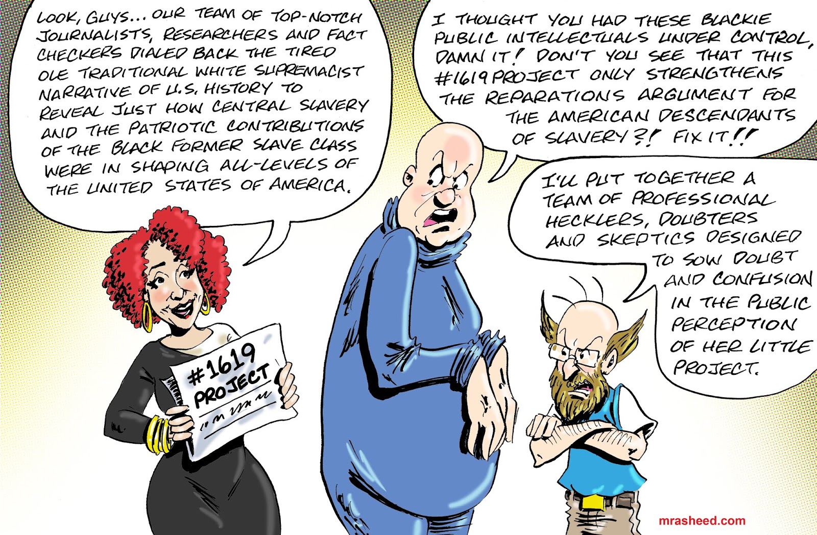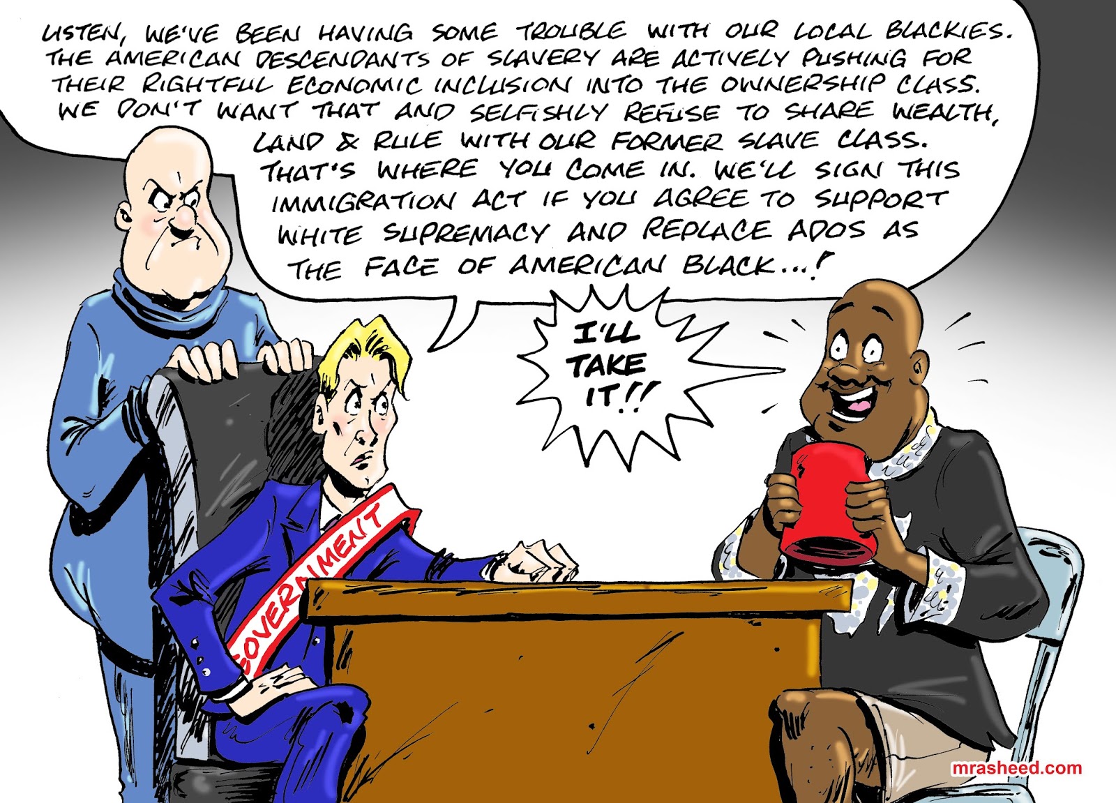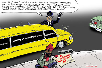 Rasheed, Muhammad. "The So-Called 'Negro Problem' for Dummies." Cartoon. The Official Website of Cartoonist M. Rasheed 14 May 2020. Pen & ink w/Adobe Photoshop color.
