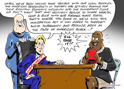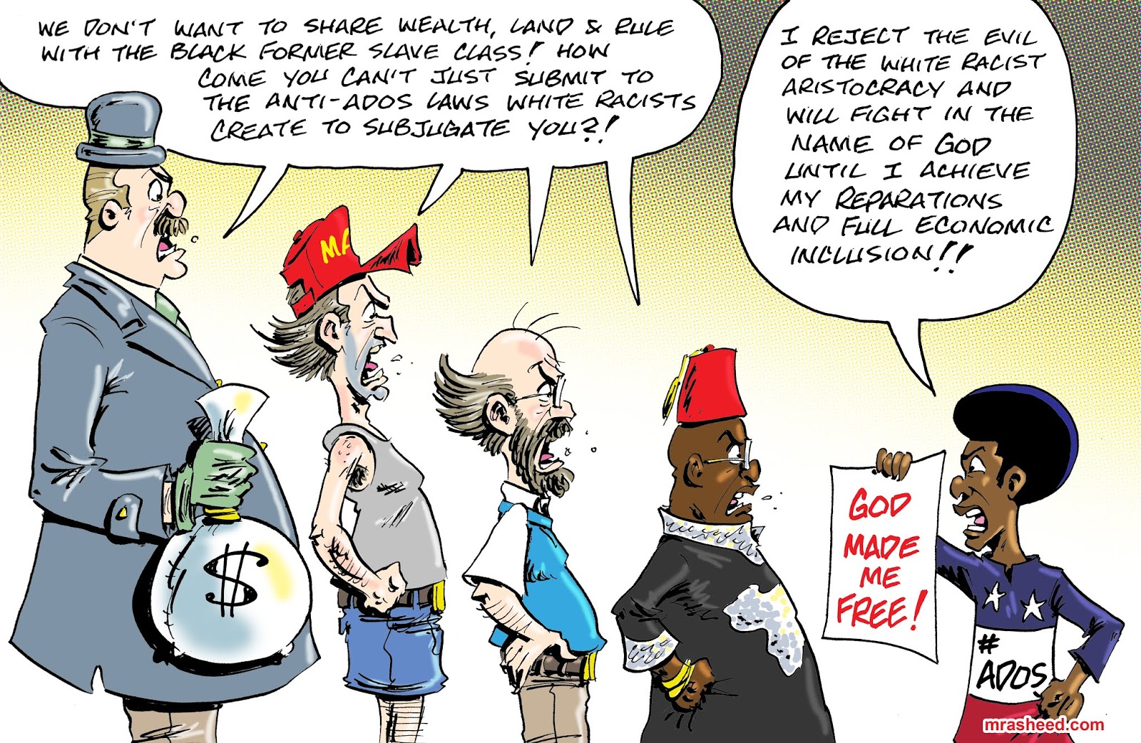 "If you are the son of a man who had a wealthy estate and you inherit your father's estate, you have to pay off the debts that your father incurred before he died. The only reason that the present generation of white Americans are in a position of economic strength... is because their fathers worked our fathers for over 400 years with no pay... We were sold from plantation to plantation like you sell a horse, or a cow, or a chicken, or a bushel of wheat... All that money... is what gives the present generation of American whites the ability to walk around the earth with their chest out... like they have some kind of economic ingenuity. Your father isn't here to pay. My father isn't here to collect. But I'm here to collect and you're here to pay." ~Malcolm XThe fact that his message is continuously misrepresented as villainy by the diabolical, Über-selfish white racist aristocracy—even up into the present day—means that Bro. Malcolm was on the right path and that particular social justice baton needs to be carried forth.