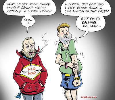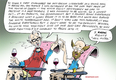 Rasheed, Muhammad. "Racism Lifecycle of the White Left." Cartoon. The Official Website of Cartoonist M. Rasheed 15 May 2020. Pen & ink w/Adobe Photoshop color.