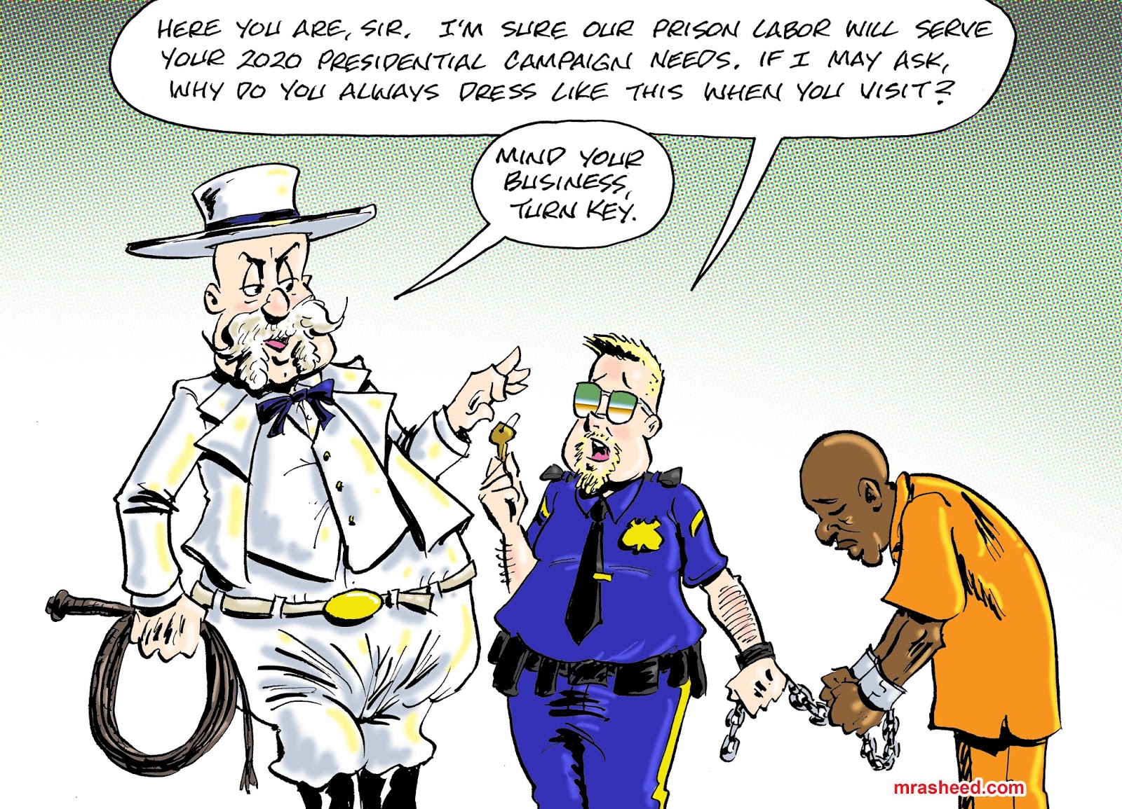 Rasheed, Muhammad. "White Supremacy’s Leftist Chapter." Cartoon. The Official Website of Cartoonist M. Rasheed 25 Feb 2020. Pen & ink w/Adobe Photoshop color.